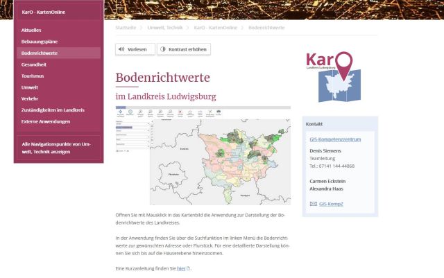 Mit anschließendem Link finden Sie einen Viewer, in dem die Bodenrichtwerte des Landkreises für ausgewählte Kommunen, auch für die Gemeinde Löchgau, enthalten sind. Sie können entweder direkt über das Flurstück oder den Verweis zur Bodenrichtwertkarte gelangen.