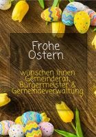 Frohe Ostern Foto mit Ostereiern und Tulpen wünschen Ihnen Gemeinderat, Bürgermeister & Gemeindeverwaltung