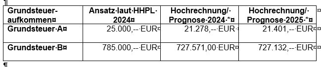 Unter Anwendung der kalkulierten Hebesätze ergibt sich folgendes prognostizierte Grundsteueraufkommen im Vergleich zum Jahr 2024: